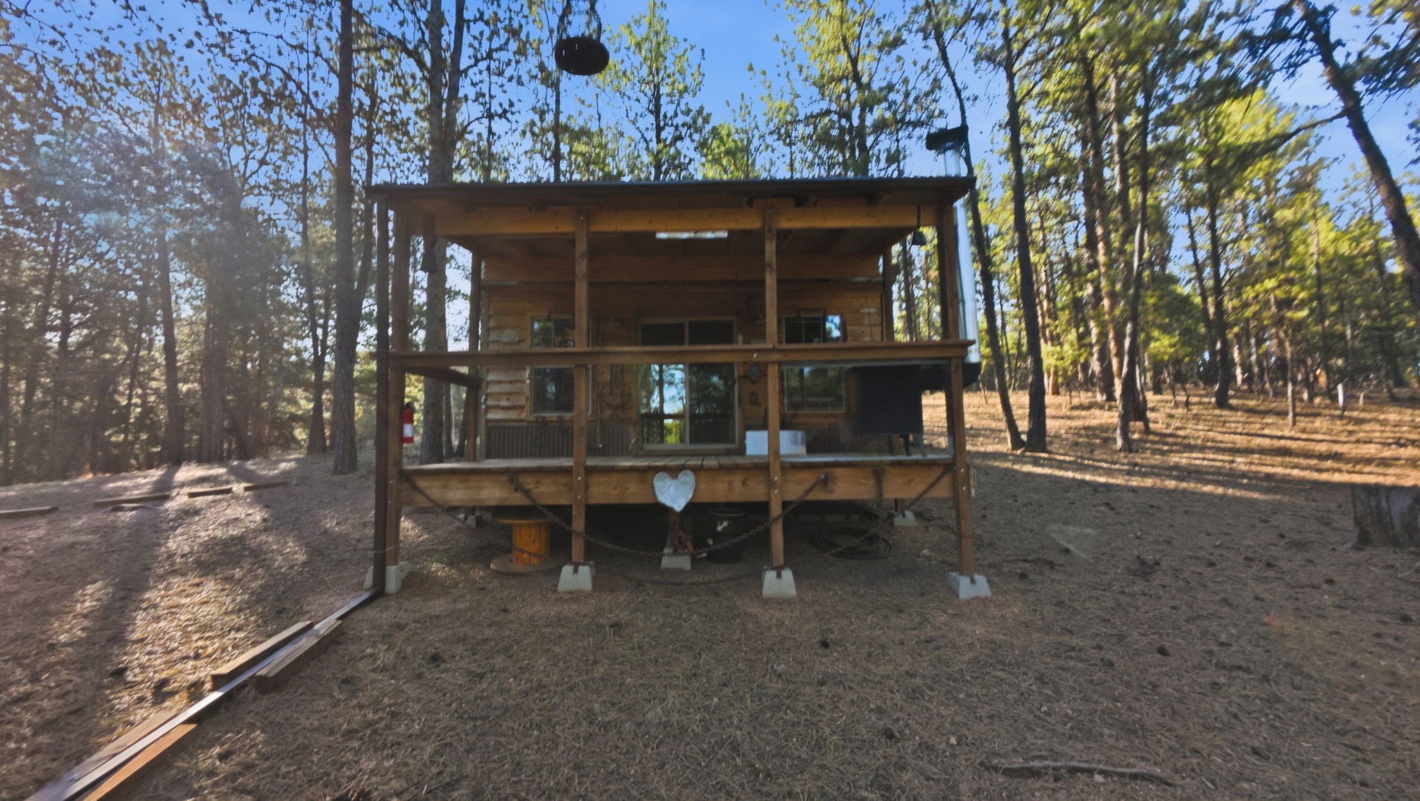 Sold as vacant land, the property includes a charming 171 Sq. Ft. off grid, rustic cabin with a large 12 x 16 front porch, cozy wood-burning stove, and two built-in Murphy-style beds. Equipped with solar power and a generator, it's perfect for weekend getaways and glamping. Everything is ready for you so that you can show up and start enjoying the outdoors with a firepit, picnic tables, seating and an outdoor powder room already in place. The Florissant Heights Community also features a pond and warming hut/picnic area. Zoned R-1M, you have the flexibility to bring in a mobile home or build your dream home on this scenic lot. Florissant Heights has a voluntary HOA and covenants. Information can be found at www.florissantheights.com. Available documents also attached to this MLS listing, PLEASE review prior to making an offer. Property is sold AS IS as part of an estate and will be conveyed at closing via a Personal Representative Deed.
